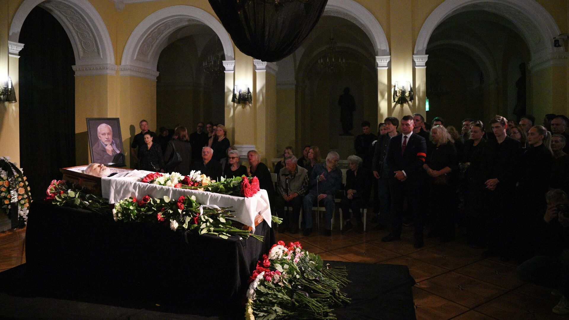 Среди присутствующих были главный режиссер Малого театра Алексей Дубровский, народные артисты РФ Валерий Афанасьев, Александр Вершинин и Василий Бочкарев, режиссер Владимир Бейлис, заслуженный артист России Василий Зотов, актер Сергей Лавыгин и другие. Церемония прощания с выдающимся театральным педагогом и народным артистом России, Владимиром Сафроновым, завершилась в Малом театре. Сафронов ушел из жизни в возрасте 84 лет в среду.